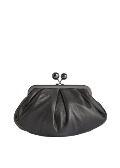 The Pasticcino Bag Small is the super clutch that adds a touch of personal charm to your everyday style. In soft touch plongé nappa leather, with a striped twill lining. The detachable chain strap with leather detail makes for a versatile style: wear it as a crossbody or handbag to accessorise an on-trend outfit. Its deconstructed shape and deliberately oversized proportions make it suitable to meet your every need. Metal fastening with large customised Max Mara Weekend spheres. Measurements: 19x10x15 cm.