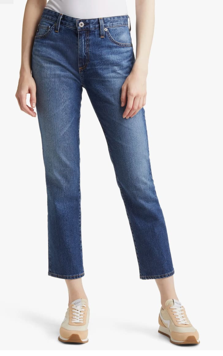 The Mari Crop is a high-rise straight leg jean for women, cut for a cropped silhouette and featuring a medium indigo wash with fading, subtle distressing, and worn hems. The high-waisted style fits easy around the hips with a straight leg and slim leg opening. This women’s high-rise jean is designed in 10 oz. Empower Denim with superstretch construction.