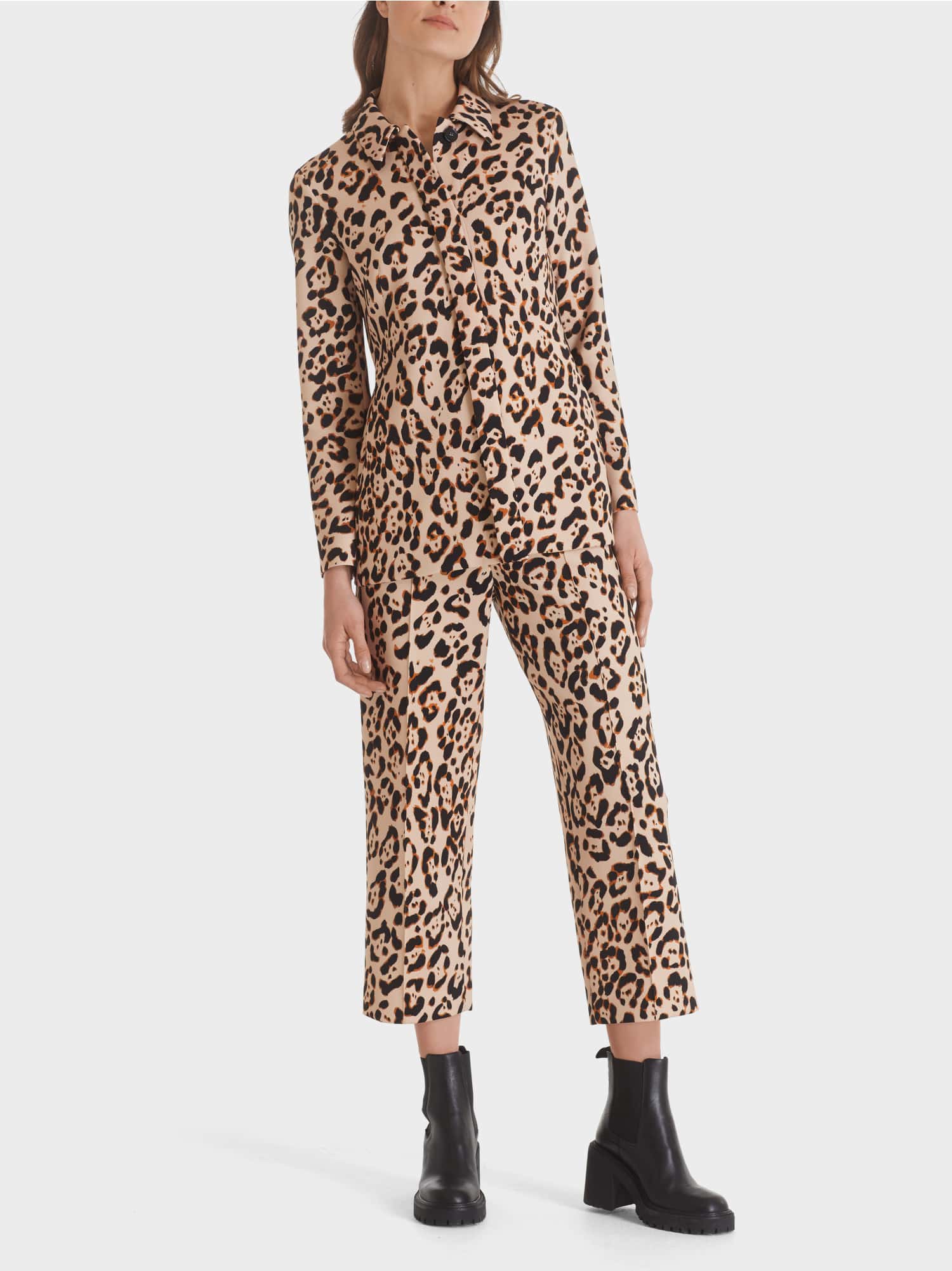 Simple shirt jacket with a straight silhouette, collar and concealed button placket. The elegant leopard print enlivens the minimalist design and makes this shirt jacket a real eye-catcher. The jacket is made from comfortable scuba jersey making it a pleasure to wear. This shirt jacket is an absolute must-have, whether worn open as a jacket, fully buttoned-up as a blazer or in an all-over look with the matching pants.
