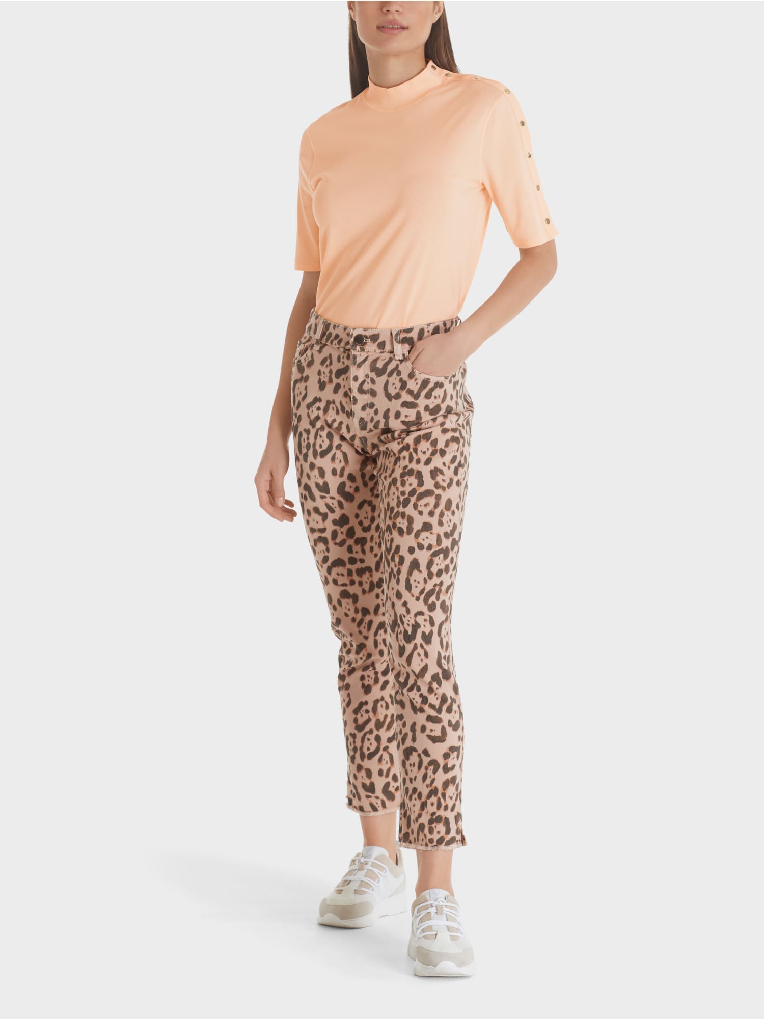 Slim-fitting jeans with a stylish leopard print. These jeans have inset pockets and practical belt loops. Fine fringes decorate the edges. These jeans with the “Rethink Together” label are made from certified organic cotton. This cotton is grown according to strict ecological standards, a particularly resource-efficient and environmentally sustainable form of agriculture.