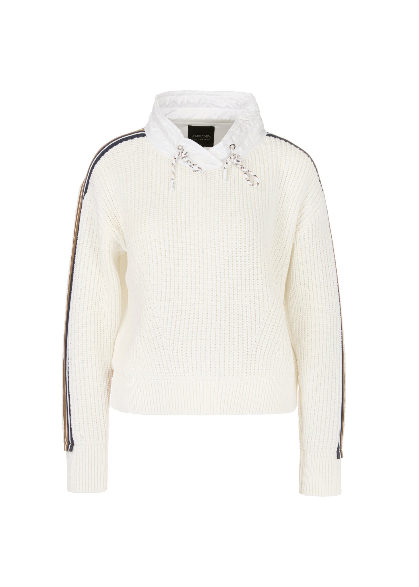 • The knit is made from organic cotton, and the garment carries the sustainability label "Rethink Together