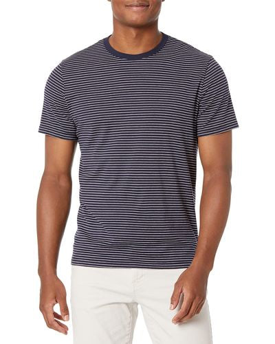 The Bryce Crew Tee for men features a classic pencil stripe pattern in navy and a contrast crew neck line. This men’s t-shirt is designed in a lightweight cotton knit made with pima cotton and added stretch.