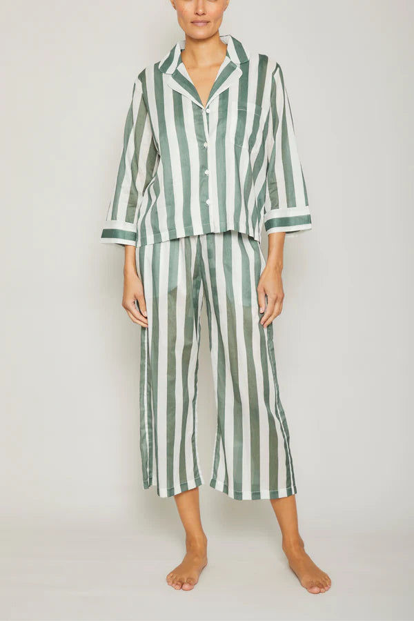 Pour Les Femmes’ Sato Pajama Set in Evergreen Stripe.