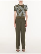 Cut in a streamlined silhouette, this short-sleeve cardigan features a striking geometric jacquard motif in tonal neutrals, lending depth and quiet visual interest. The structured yet lightweight knit sits neatly through the body, creating a polished profile that feels both contemporary and effortless.