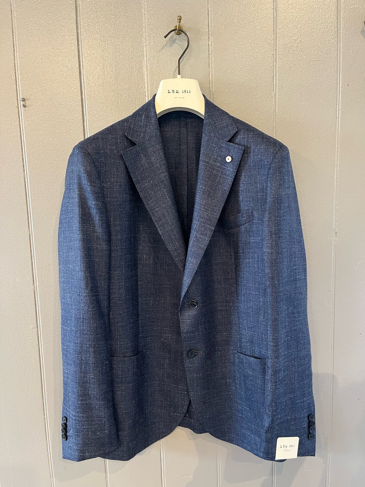 This L.B.M. 1911 jacket is crafted in Italy from a softly structured wool blend, woven in a refined blue mélange that offers depth and versatility.