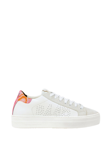 The Thea is P448's take on a modern platform sole. This sneaker pops with fluorescent pink & orange snake-embossed detail.