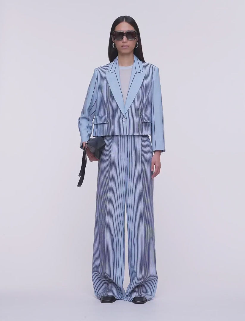 The Berlier Embroidered Stripes Jacket is a relaxed fit, cropped jacket, crafted from a viscose blend. This striking jacket showcases exceptional craftsmanship through its striped embroidery and modern silhouette.