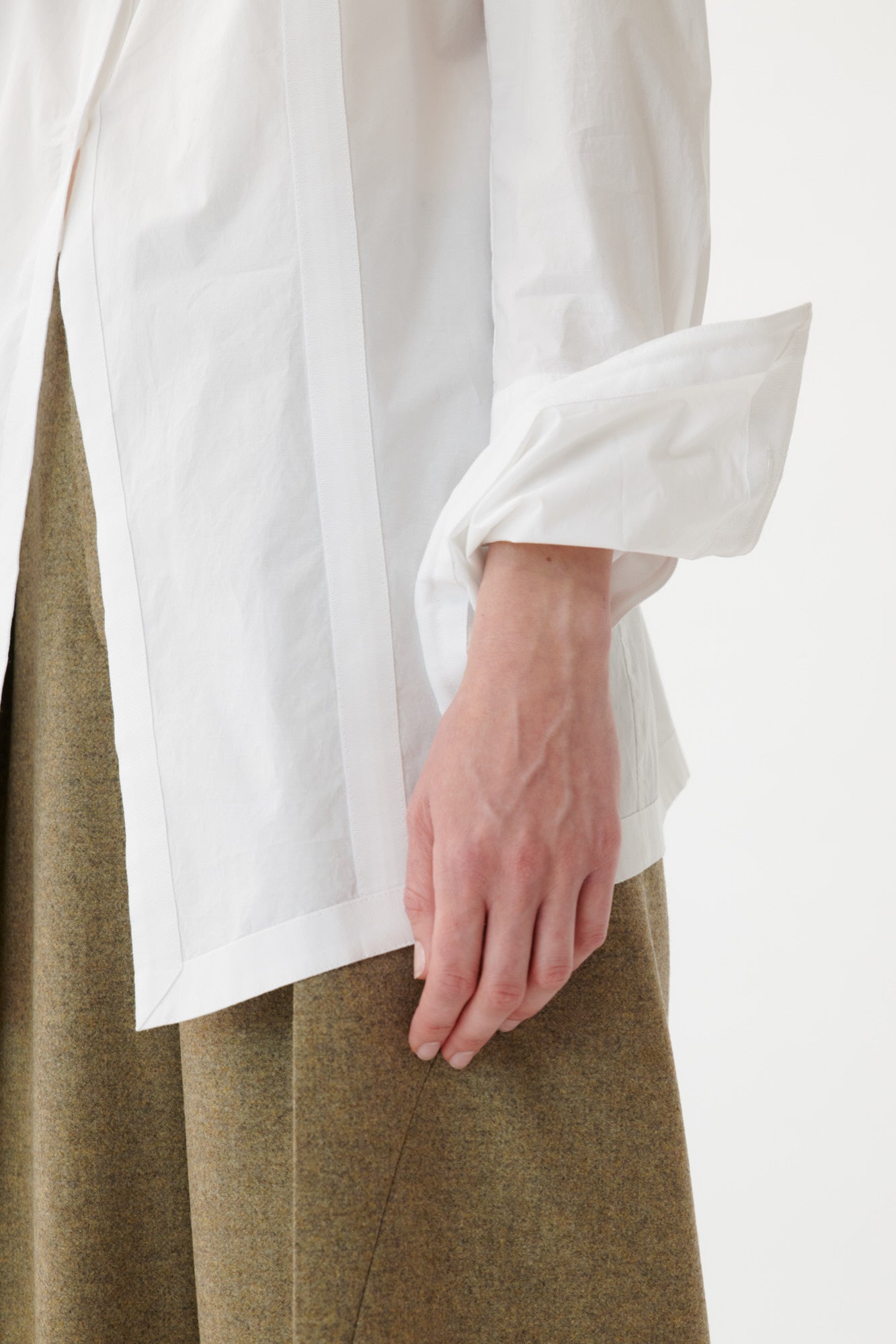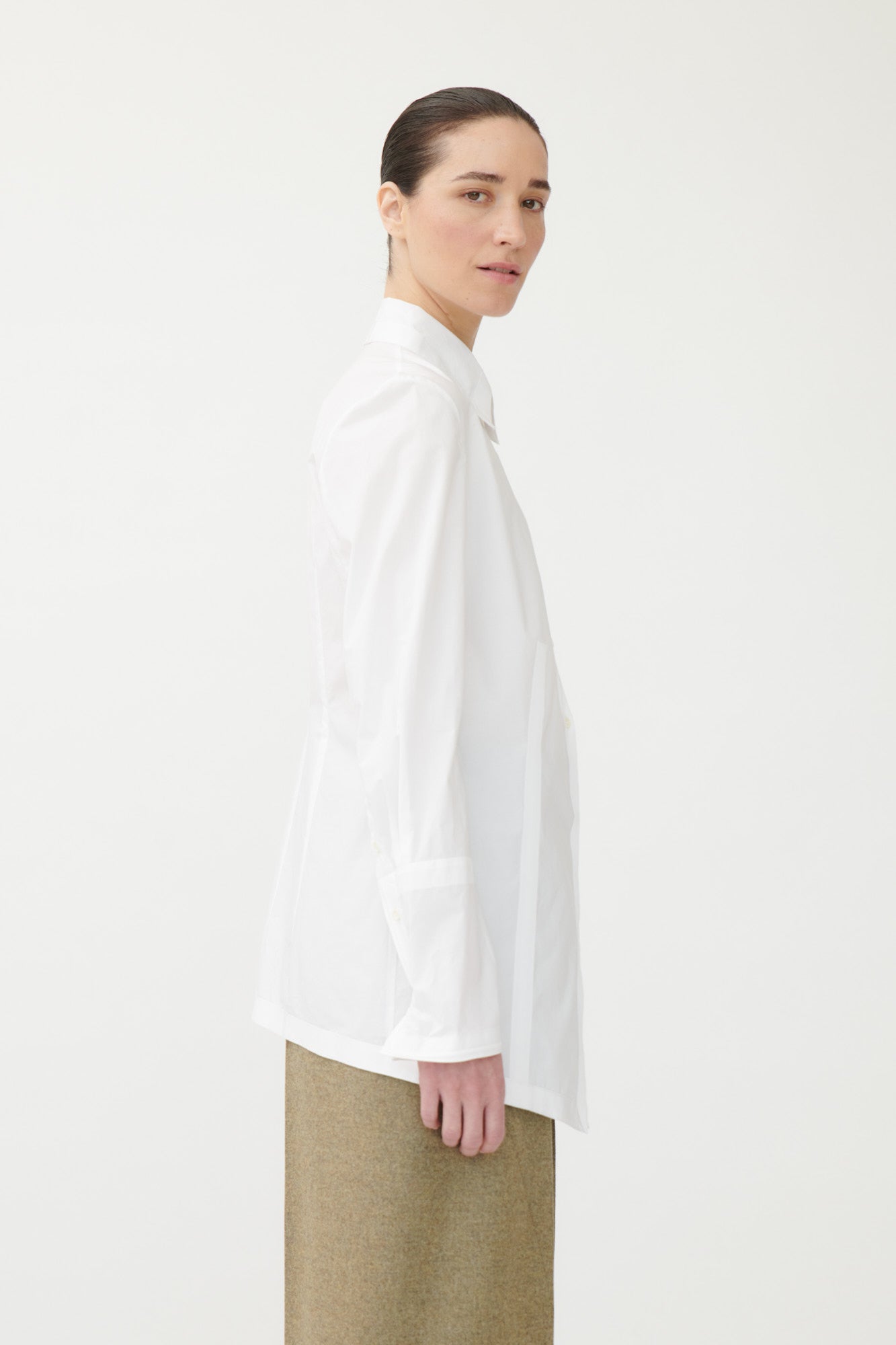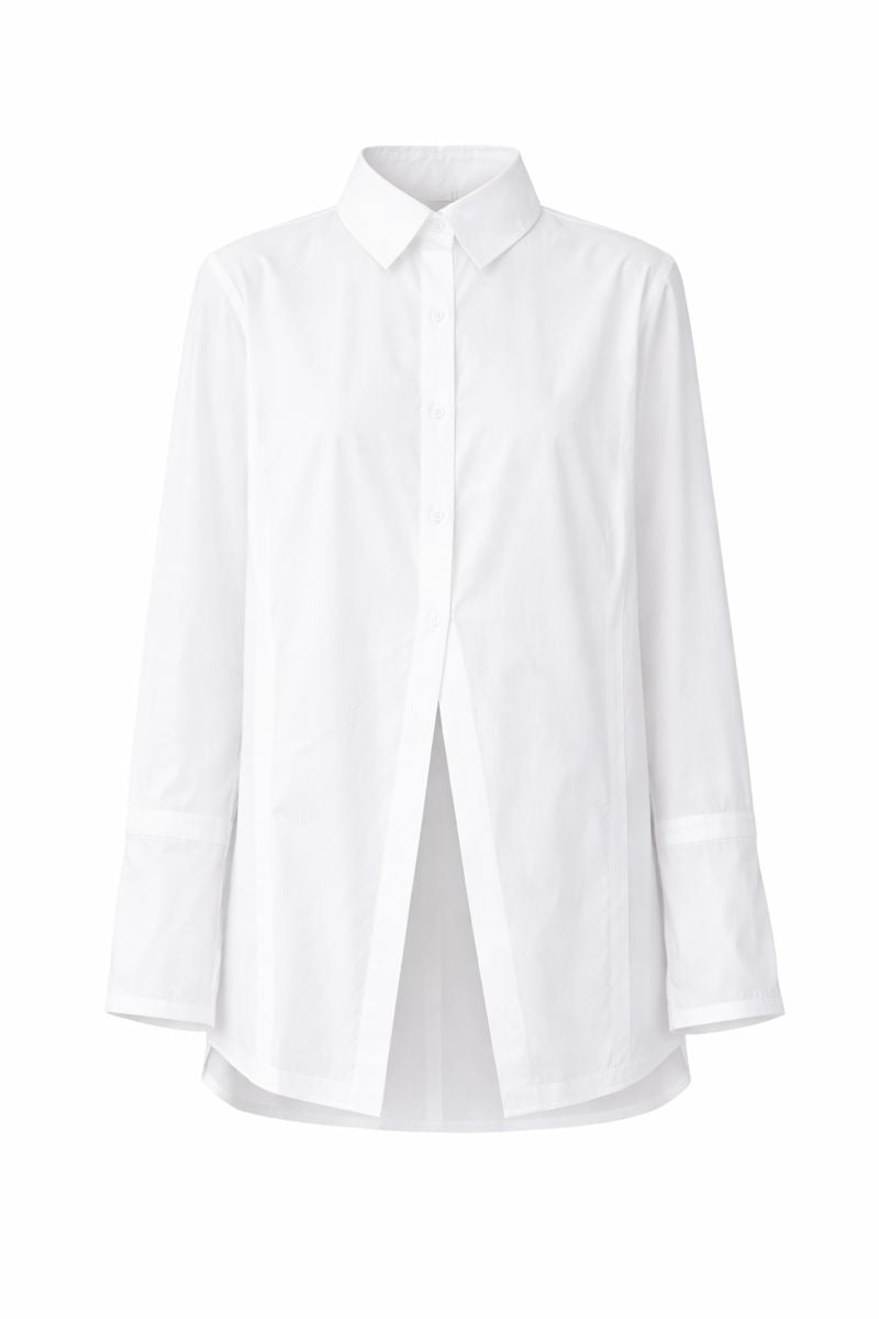 The Cinda shirt by Annette Görtz is a refined interpretation of the classic white shirt, reimagined through a modern, architectural lens.
