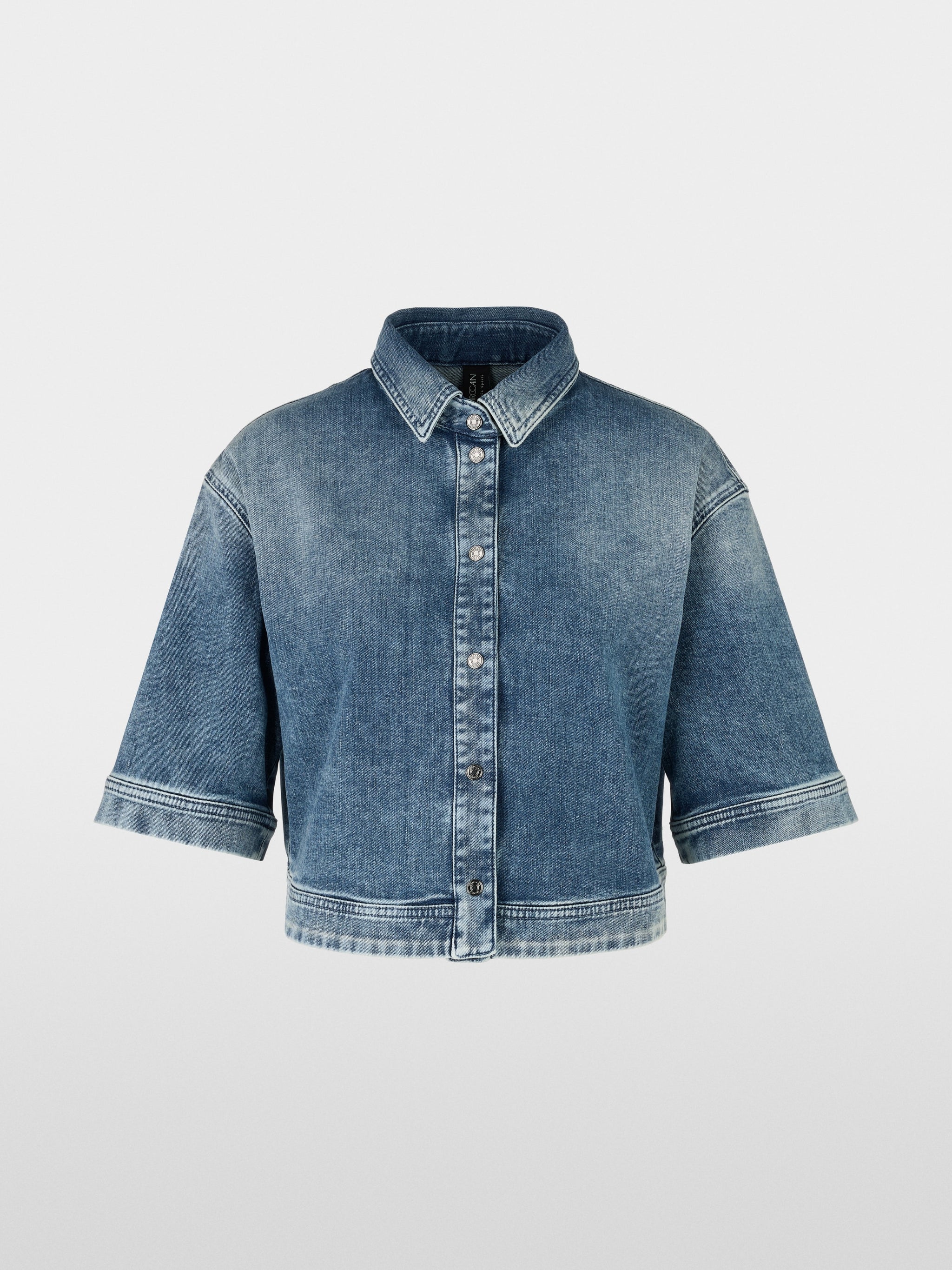 This unconventional denim blouse has a wide, cropped cut. The sleeves are mid-length and also have a wide shape. This silhouette gives the design a unique look. The full-length row of press studs completes the overall look. This blouse is made from regenerative cotton with a small amount of stretch and is from the Rethink Together sustainability label.